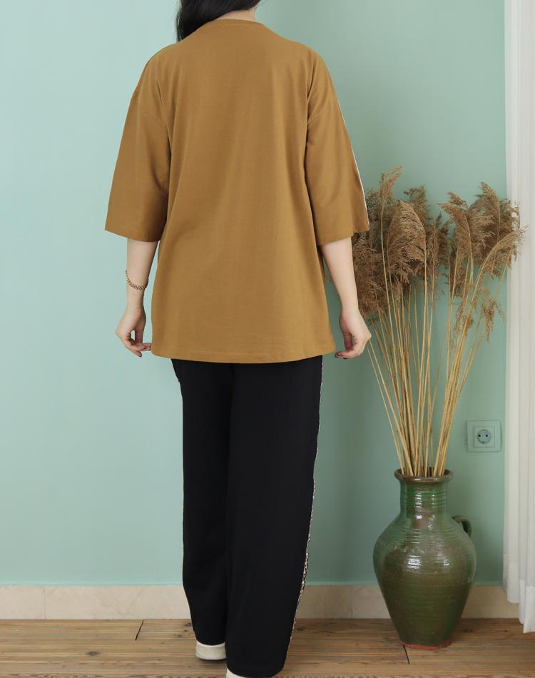 تیشرت: قد 71 دورسینه 114تا 134 دور باسن 116تا136 قد آستین از یقه 49 دور بازو 44تا54