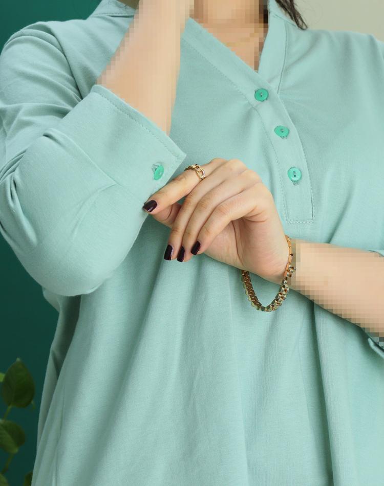 ابعاد: قد وسط 70 قد گوشه ها 60 دور سینه 114تا 134 دور باسن118تا138 قد آستین از یقه54 دور بازو 40تا50