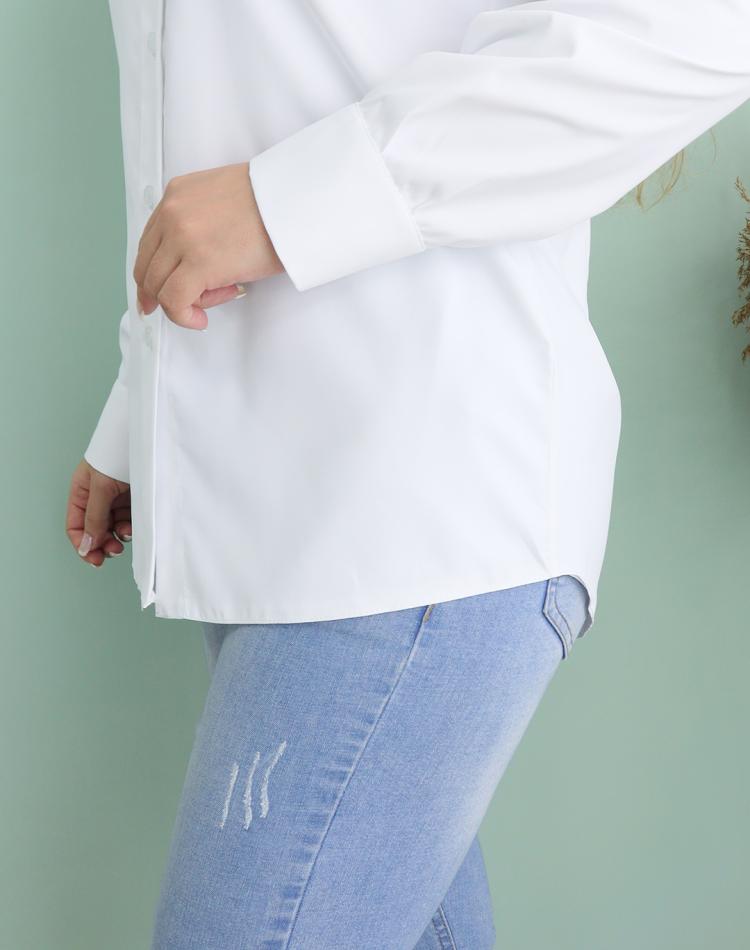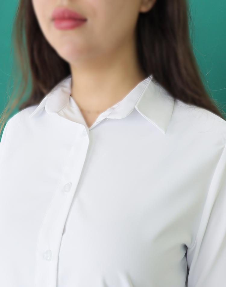 جلوی شومیز تماما دکمه کار شده و سر آستین ها هم مچی و دکمه خورده
